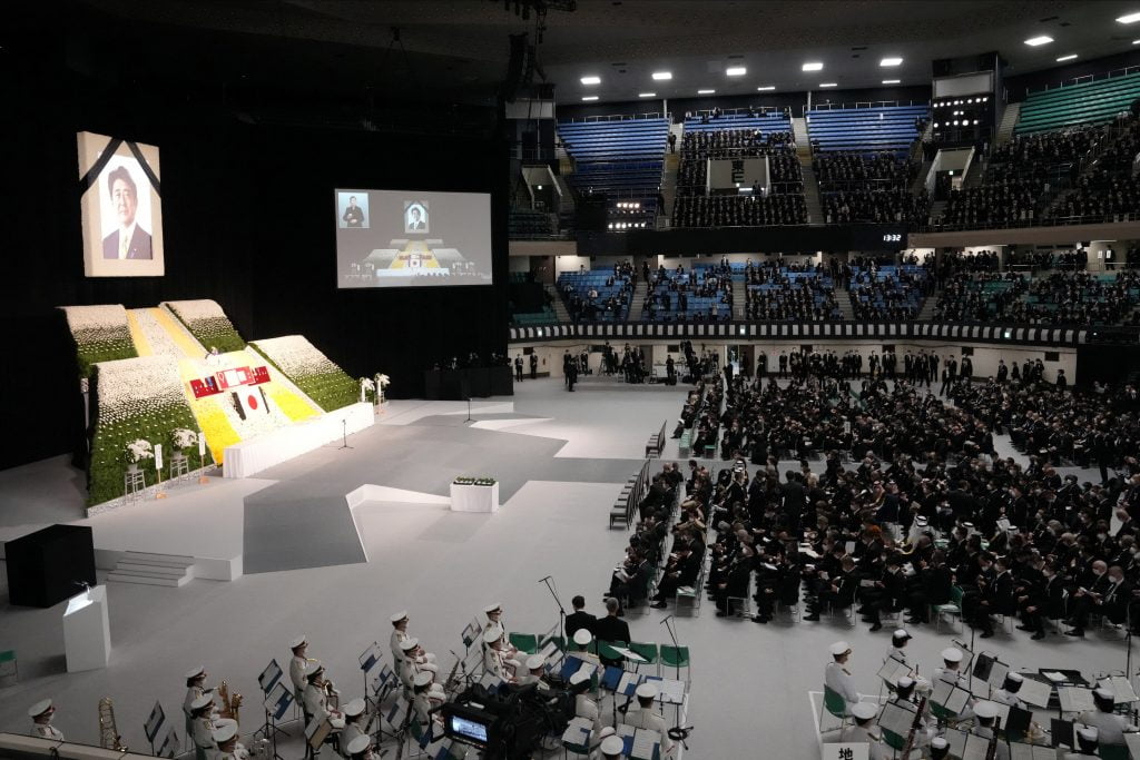 รัฐพิธีศพของนายอาเบะเริ่มขึ้นในเวลา 14.00 น.ตามเวลาท้องถิ่น โดยนายกรัฐมนตรีฟูมิโอะ คิชิดะ และนายโยชิฮิดะ ซูงะ อดีตนายกรัฐมนตรีและหัวหน้าเลขาธิการคณะรัฐมนตรีซึ่งสนับสนุนนายอาเบะมาโดยตลอดนั้น จะขึ้นกล่าวสดุดีนายอาเบะในรัฐพิธีครั้งนี้