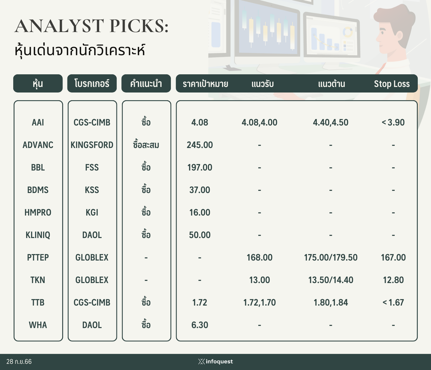 ANALYST PICKS: หุ้นเด่นจากนักวิเคราะห์ วันที่ 28 กันยายน 2566