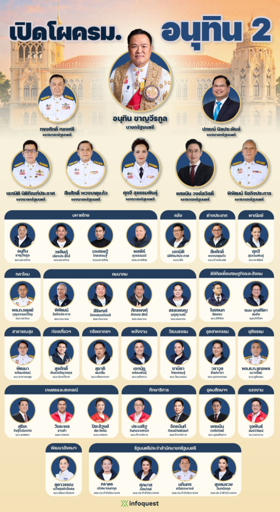 เปิดโผครม. “อนุทิน2” ไร้ชื่อ “บวรศักดิ์” จับตา “ปกรณ์ นิลประพันธ์” นั่งแทน/เพื่อไทยได้ 8 เก้าอี้ พปชร.รอลุ้น 18:26น.