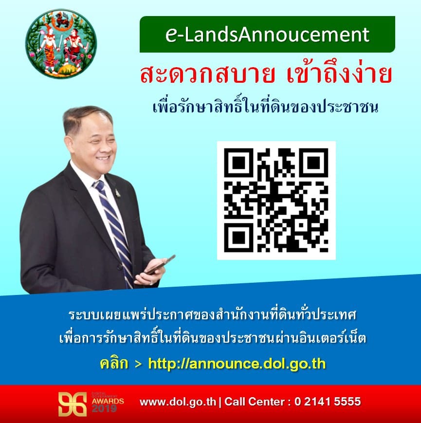 กรมที่ดิน ดัน e-LandsAnnouncement ตรวจสอบประกาศที่ดินทั่วไทยด้วยปลายนิ้ว 24 ชม.