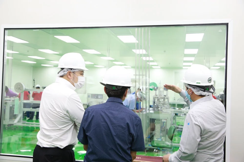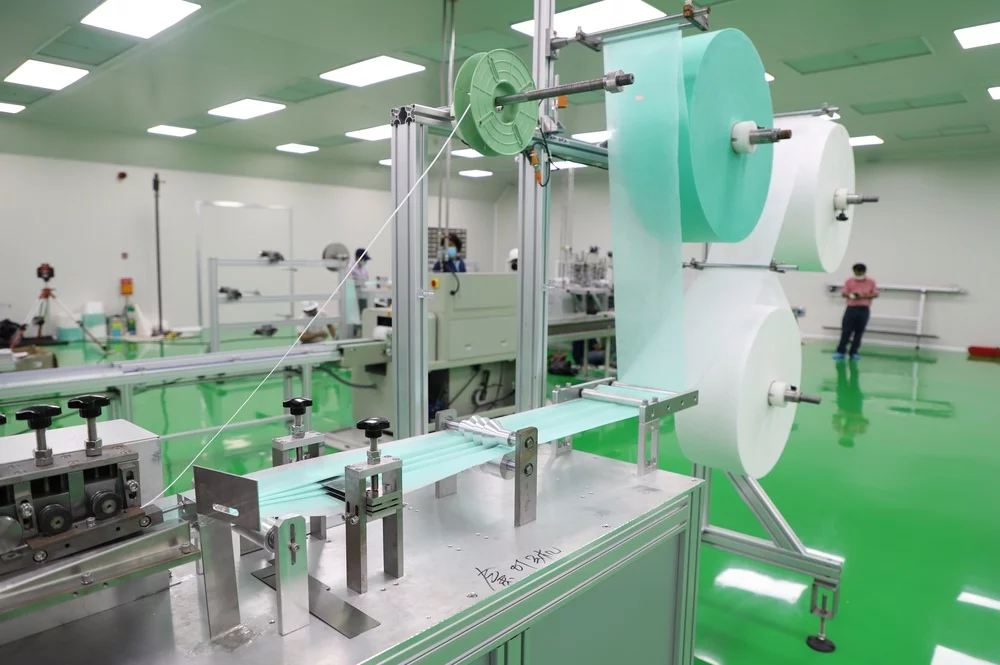 “แต่ด้วยความสัมพันธ์ที่ดีของทั้งสองประเทศ ได้ช่วยทำให้ขนส่งเครื่องจักรกลับมาได้ทันเวลา ซึ่งบริษัทต้องเช่าเครื่องบินเหมาลำนำเครื่องจักร 2 เครื่องมาถึงไทยและติดตั้งได้สำเร็จ ตั้งเป้าผลิตได้เดือนละ 3 ล้านชิ้น มอบให้กับโรงพยาบาลจุฬาลงกรณ์ สภากาชาดไทย ส่งมอบให้บุคคลากรทางการแพทย์ และแจกฟรีให้กับประชาชน”