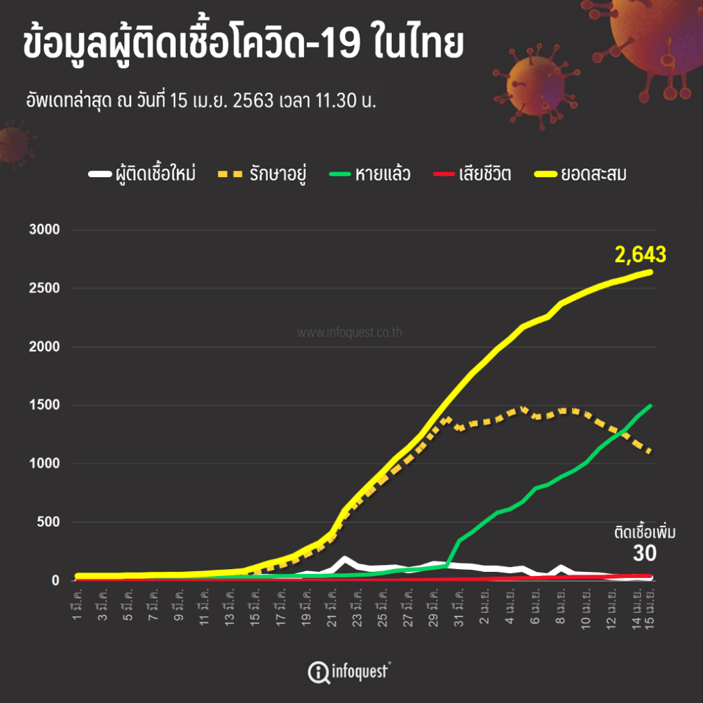 - ศบค.สรุปยอดผู้ติดเชื้อโควิด-19 ในไทย วันที่ 15 เม.ย. 2563 (เวลา 11.30 น.)