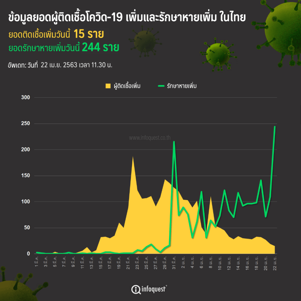 - ศบค.สรุปยอดผู้ติดเชื้อโควิด-19 ในไทย วันที่ 22 เม.ย. (11.30 น.)