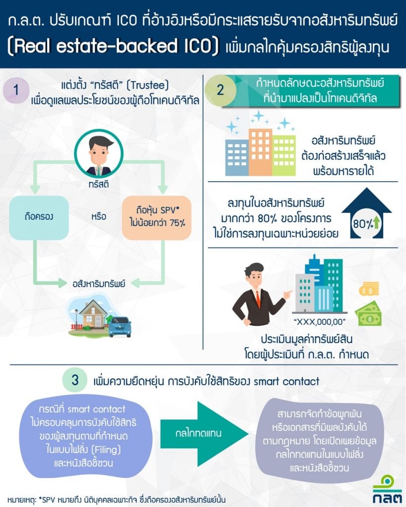ดังนั้น ก.ล.ต. จึงปรับปรุงหลักเกณฑ์การออก real estate-backed ICO ให้มีกลไกคุ้มครองสิทธิผู้ลงทุนที่เหมาะสม ดังนี้