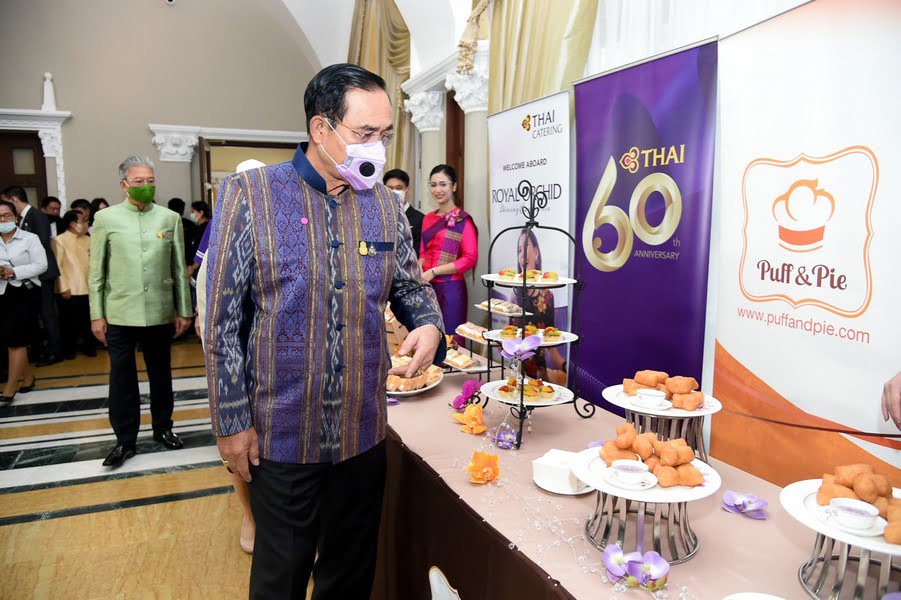 นายอนุชา บูรพชัยศรี โฆษกประจำสำนักนายกรัฐมนตรี เปิดเผยว่า ช่วงเช้าก่อนเข้าร่วมประชุมคณะรัฐมนตรี (ครม.) ในวันนี้ นายชาญศิลป์ ตรีนุชกร รักษาการแทนกรรมการผู้อำนวยการใหญ่ บมจ.การบินไทย (THAI) นำเชฟการบินไทยร่วมประชาสัมพันธ์ “อร่อยล้นฟ้า@สีลม ไม่ต้องบิน ก็ฟินได้” โดยได้นำปาท่องโก๋ และสังขยามันม่วงสูตรการบินไทย มาให้พล.อ.ประยุทธ์ จันทร์โอชา นายกรัฐมนตรีและรมว.กลาโหมได้ชิม โดยนายกรัฐมนตรีชมว่า “อร่อย”