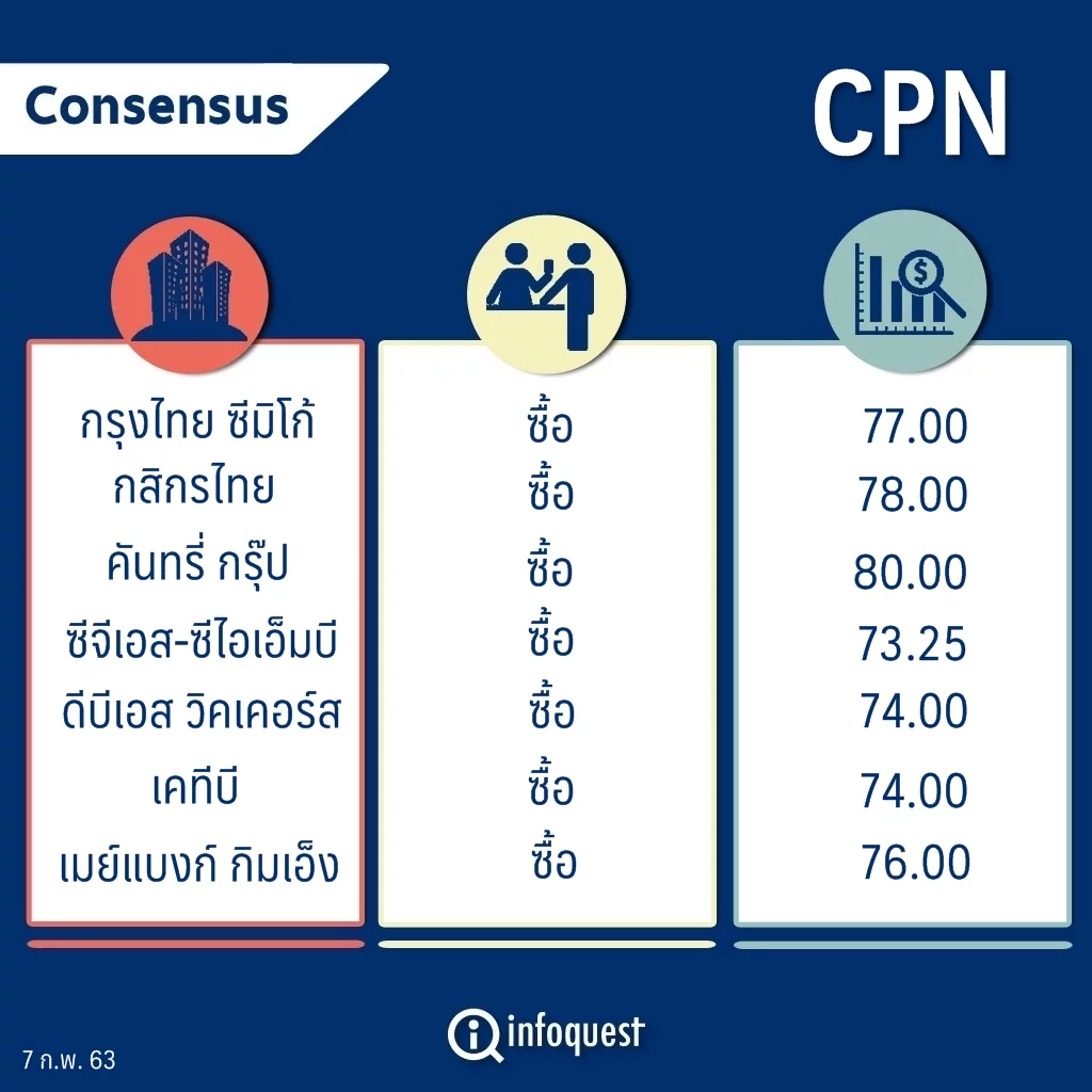 “เราคงคำแนะนำ ซื้อ ด้วยฐานธุรกิจที่แข็งแกร่ง และแผนพัฒนาธุรกิจในอนาตคต รวมถึงการปรับกลยุทธ์การพัฒนาโครงการให้เข้ากับกระแสโลกที่เปลี่ยนไป อีกทั้งด้วยงบดุลที่แข็งแกร่งอย่างมาก ทำให้ CPN เป็นหนึ่งในผู้พัฒนาโครงการที่สามารถคว้าโอกาสในการลงทุนในช่วงที่เศรษฐกิจโลกชะลอตัวลง ขณะเดียวกันยังมีฐานะการเงินที่แข็งแกร่ง รองรับสำหรับการขยายกิจการ ท่ามกลางภาวะตลาดที่ผันผวน”