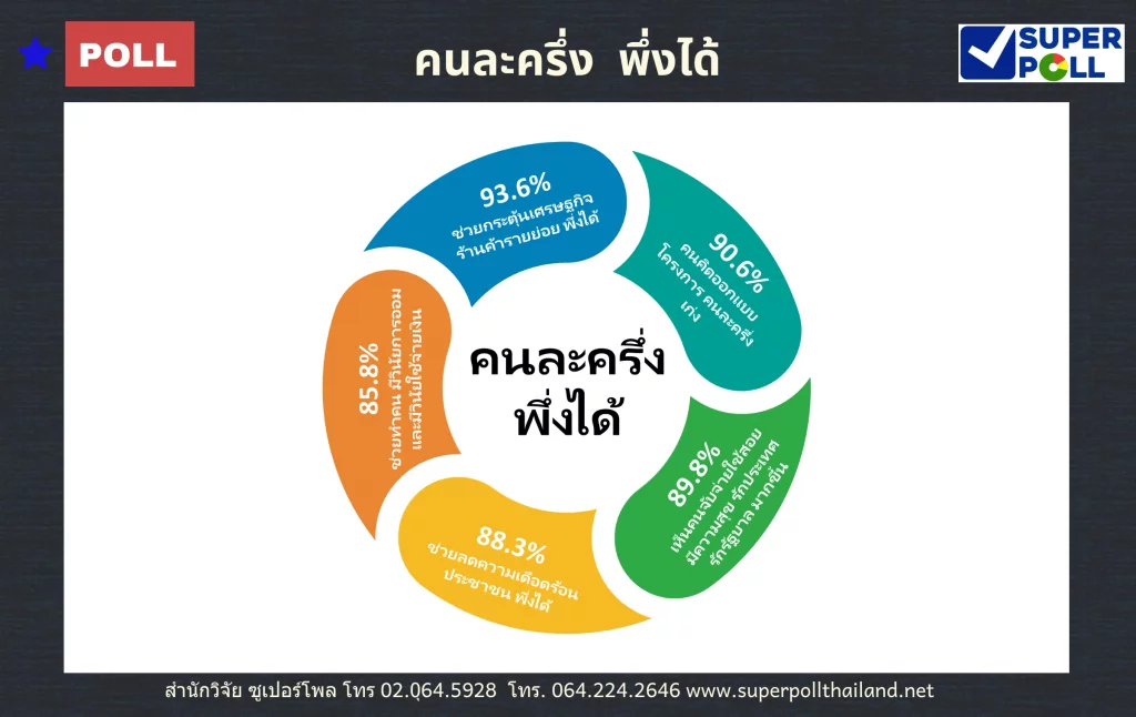 ซูเปอร์โพล เผยความนิยม พปชร. เพิ่มหลังมี คนละครึ่ง หนุนนายกฯอยู่ต่อ