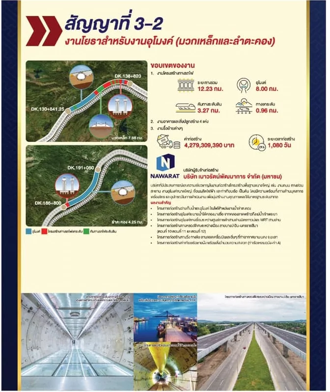 สัญญาที่ 3-2 งานโยธาสำหรับงานอุโมงค์ (มวกเหล็กและลำตะคอง) ดำเนินการโดย บมจ.เนาวรัตน์พัฒนาการ (NWR) ซึ่งมีจุดเด่นคืองานก่อสร้างอุโมงค์ยาวรวม 8 กิโลเมตร และการก่อสร้างทางรถไฟระยะทางรวม 12.23 กิโลเมตร วงเงิน 4,279.309 ล้านบาท