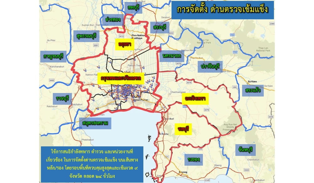 ดังนั้น ฝ่ายความมั่นคงจะมีการตั้งด่านตรวจอย่างเข้มข้นและจัดชุดตรวจเข้มแข็ง กระจายในพื้นที่ควบคุมสูงสุดและเข้มงวด 13 จังหวัด และเส้นทางระหว่างจังหวัดในกลุ่มพื้นที่ดังกล่าว ตลอด 24 ชั่วโมง เพื่อสกัดกั้นประชาชนไม่ให้ได้รับความสะดวกในการเดินทางให้มากที่สุด