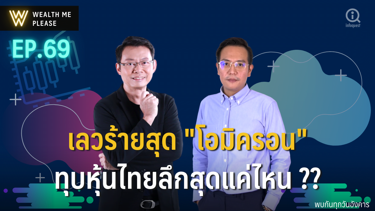 สำหรับสัปดาห์นี้ “Wealth Me Please” ชวนไปค้นหาคำตอบหลายกรณีการระบาดระลอกใหม่ของเชื้อ “โอมิครอน” ในไทยตั้งแต่เลวร้ายที่สุดที่ Downside Risk อาจฉุดให้ดัชฯร่วงลึกถึง 1,500 จุด พร้อมกับแนวทางปฎิบัติของนักลงทุนรายย่อยว่าต้องปรับพอร์ตการลงทุนกันอย่างไรเพื่อรับมือกับความเสี่ยงที่ไม่คาดฝันผ่านมุมมองของนายธวัชชัย อัศวพรไชย รองกรรมการผู้จัดการ บล.เอเอสแอล