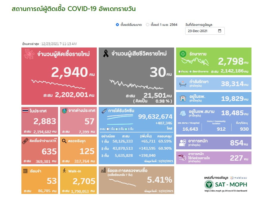 สำหรับจำนวนผู้ป่วยยืนยันสะสมในประเทศตั้งแต่ต้นปี 63 จนถึงล่าสุดอยู่ที่ 2,202,001 ราย โดยมีผู้ป่วยรักษาหายแล้วเพิ่มขึ้น 2,798 ราย ยอดเสียชีวิตสะสมเพิ่มเป็น 21,501 ราย