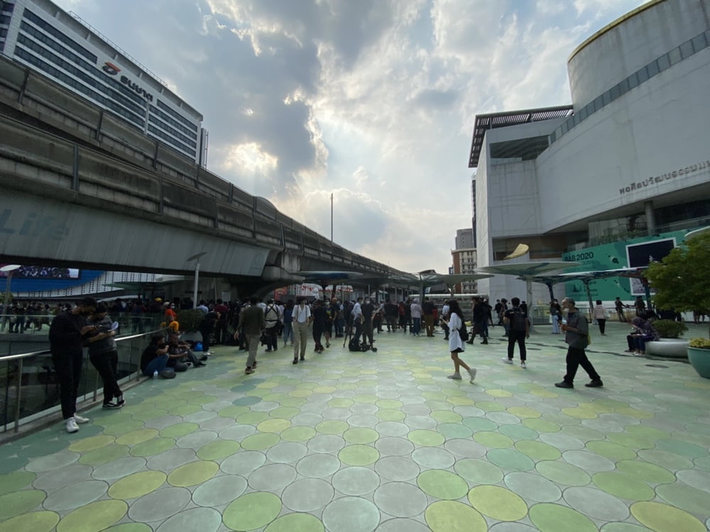 ล่าสุดนายภาณุพงศ์ จาดนอก หรือไมค์ ระยอง ได้ประกาศให้ผู้ชุมนุมย้ายจากสกายวอล์ค ลงมาชุมนุมบริเวณด้านล่าง เนื่องจากเห็นว่าบนสกายวอล์คไม่เป็นชัยภูมิที่ปลอดภัย ซึ่งทำให้ขณะนี้ผู้ชุมนุมได้เริ่มทยอยเดินลงมาชุมนุมอยู่บริเวณหน้าหอศิลปวัฒนธรรมกรุงเทพแล้ว และมีความเป็นไปได้ว่าหากผู้ชุมนุมมีจำนวนมากขึ้นก็อาจจะย้ายลงสู่ถนนบริเวณสี่แยกปทุมวันได้
