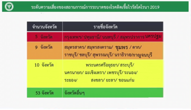 - ให้ทุกจังหวัดตั้งรับเฝ้าระวังผู้ที่เดินทางมาจากพื้นที่เสี่ยง ให้ อสม.เคาะประตูบ้าน