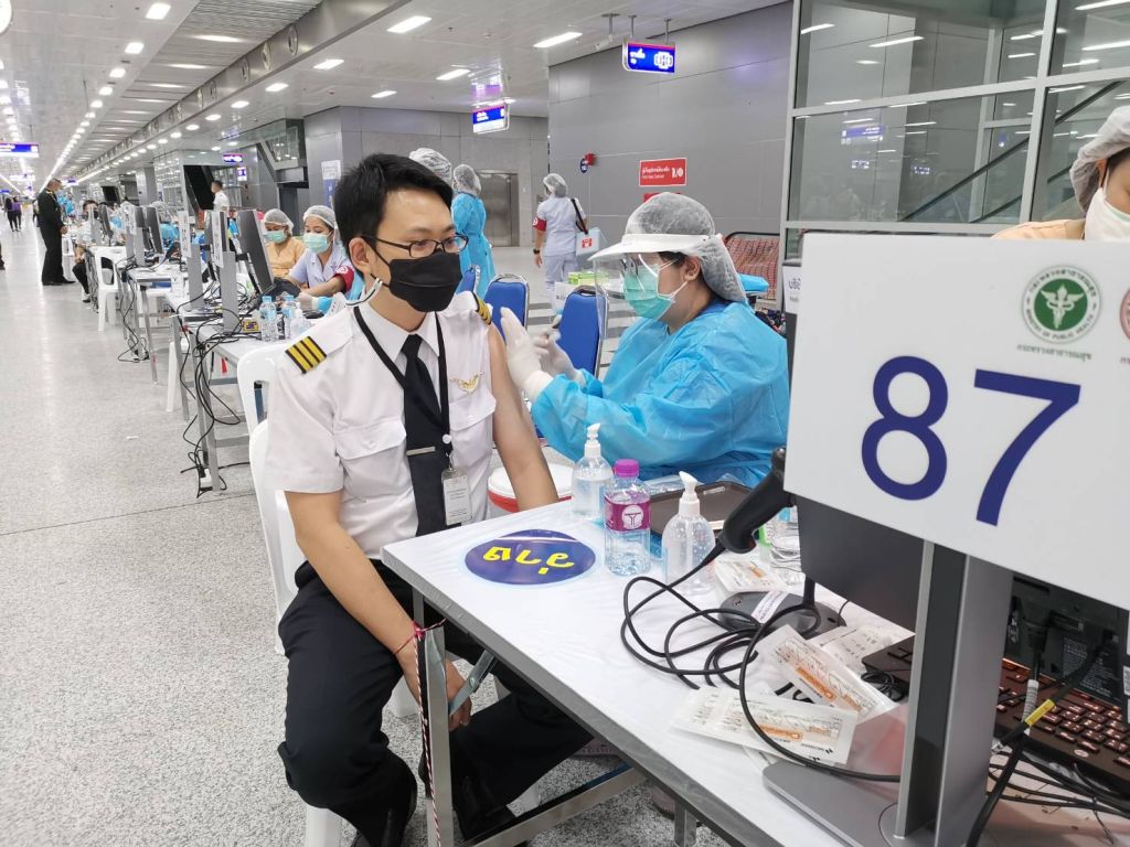 บริษัทฯ ได้รับการจัดสรรวัคซีนจากรัฐบาลผ่านทางสำนักงานการบินพลเรือนแห่งประเทศไทย ภายใต้การดูแลของกระทรวงคมนาคม และผ่านทางกระทรวงสาธารณสุข จัดให้บุคลากรทางการบินของบริษัทฯ จำนวน 3,084 คน และพนักงานประจำสำนักงาน (Back Office) จำนวน 838 คน เข้ารับการฉีดวัคซีนป้องกันโควิด-19 ณ ศูนย์วัคซีนกลางบางซื่อ (Central Vaccination Center)