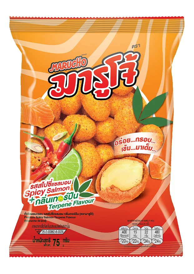 ทั้งนี้ บริษัทมีความมุ่งมั่นตั้งใจในการสร้างสรรค์ผลิตภัณฑ์ใหม่ และเพื่อตอบรับเทรนด์ที่หลากหลายจึงได้เปิดตัว “ถั่วมารูโจ้ รสสไปซี่แซลมอนกลิ่นเทอร์ปีน” ที่นอกจากจะยังคงความพิเศษด้วยการคัดเลือกถั่วลิสงที่มีคุณภาพผ่านการปรุงรสอย่างพิถีพิถัน ยังตอบรับกระแสคนรุ่นใหม่ด้วยการผสมผสานเทรนด์กัญชง-กัญชาให้เกิดเป็นรสชาติใหม่ที่อร่อยเข้มข้นแน่นอน โดยเริ่มวางจำหน่ายตั้งแต่วันที่ 17 ม.ค.65 ในร้านสะดวกซื้อทั่วประเทศ 7-ELEVEN เพื่อให้สินค้าได้กระจายได้อย่างทั่วถึง ผู้บริโภคสามารถหาซื้อได้ง่าย
