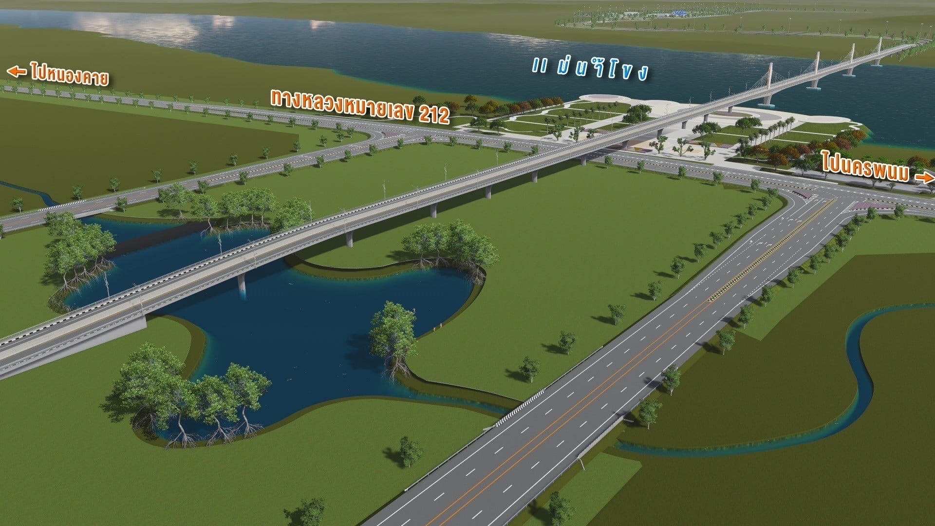 - ส่วนที่ 3 งานสะพานข้ามแม่น้ำโขงฝั่งไทย รวมงานปรับปรุงสี่แยกทางหลวงหมายเลข 212 และลานอเนกประสงค์ใต้สะพาน แบ่งเป็น ฝั่งไทย ช่วง กม. ที่ 12+082.930 – 13+032.930 วงเงิน 787 ล้านบาท เริ่มต้นสัญญาเมื่อวันที่ 24 พฤศจิกายน 2563 สิ้นสุดสัญญาวันที่ 8 พฤศจิกายน 2566 มีความคืบหน้า 18% ช้ากว่าแผน 2.77% และฝั่ง สปป.ลาว ระยะทาง 0.535 กิโมเมตร วงเงิน 379 ล้านบาท เริ่มต้นสัญญาเมื่อวันที่ 4 มกราคม 2564 สิ้นสุดสัญญาวันที่ 3 มกราคม 2567 มีความคืบหน้า 25.21% เร็วกว่าแผน 8.11% ในส่วนของงานถนนและด่านพรมแดนฝั่ง สปป.ลาว มีความคืบหน้า 40.78% เร็วกว่าแผน 3.52%