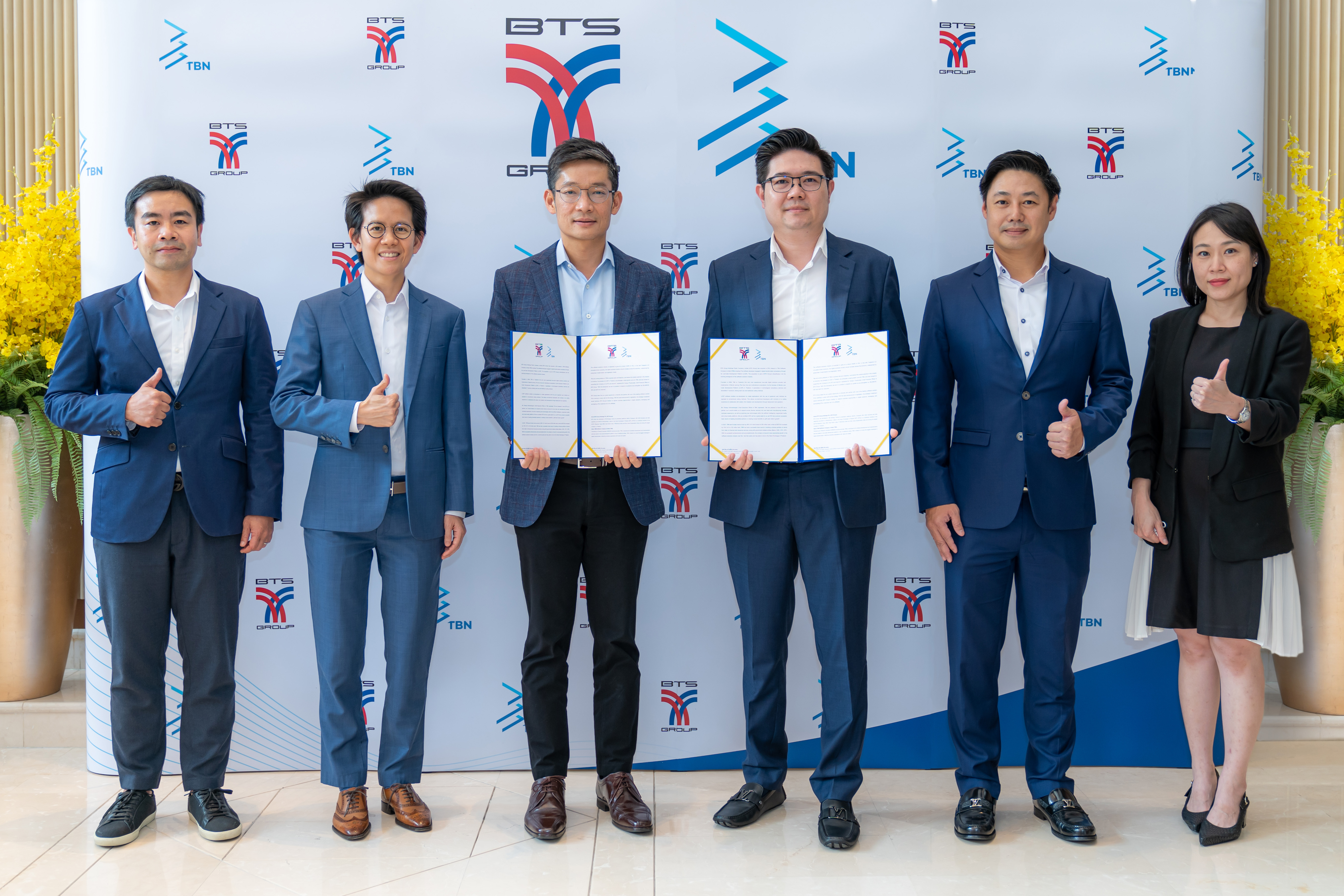 ตลอดจนการนำเทคโนโลยีใหม่ๆ ทั้ง Artificial Intelligence (AI) Augmented Reality (AR) และ Virtual Reality (VR) มาผสมผสานเพื่อให้ได้โซลูชั่นที่เกิดประโยชน์สูงสุดแก่กลุ่มลูกค้าของ TBN เรามั่นใจว่าบีทีเอส กรุ๊ปฯ จะเป็นกำลังสนับสนุนที่แข็งแรงให้แก่ TBN ในการบุกเบิกธุรกิจใหม่ๆ ซึ่งเห็นได้จากความสำเร็จที่ BTS สร้างโอกาสทางธุรกิจร่วมกับบรรดาพันธมิตรทางธุรกิจ พร้อมทั้งเพิ่มการเติบโตร่วมกันอย่างยั่งยืน