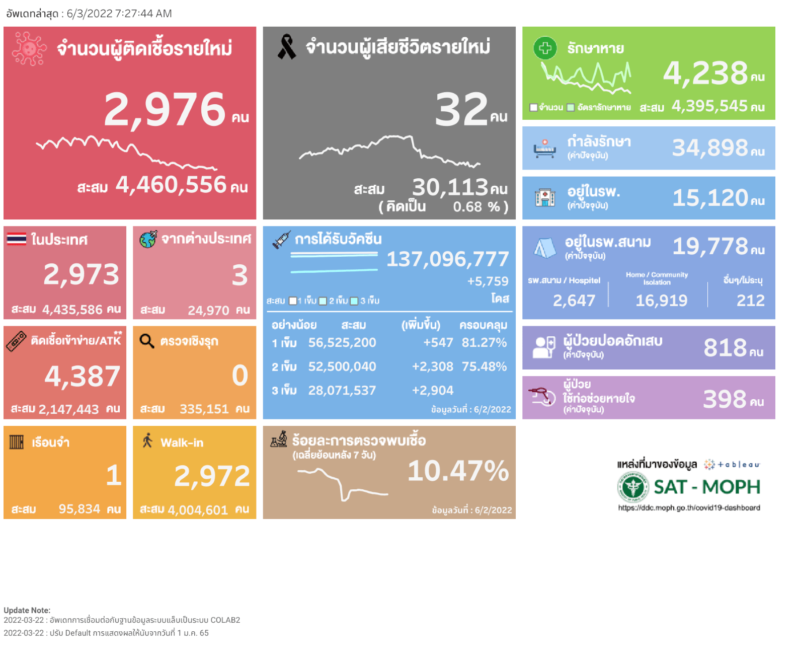สำหรับจำนวนผู้ป่วยยืนยันสะสมในประเทศตั้งแต่ต้นปี 63 จนถึงล่าสุดอยู่ที่ 4,460,556 ราย โดยมีผู้ป่วยรักษาหายแล้วเพิ่มขึ้น 4,238 ราย ยอดเสียชีวิตสะสมเพิ่มเป็น 30,113 ราย