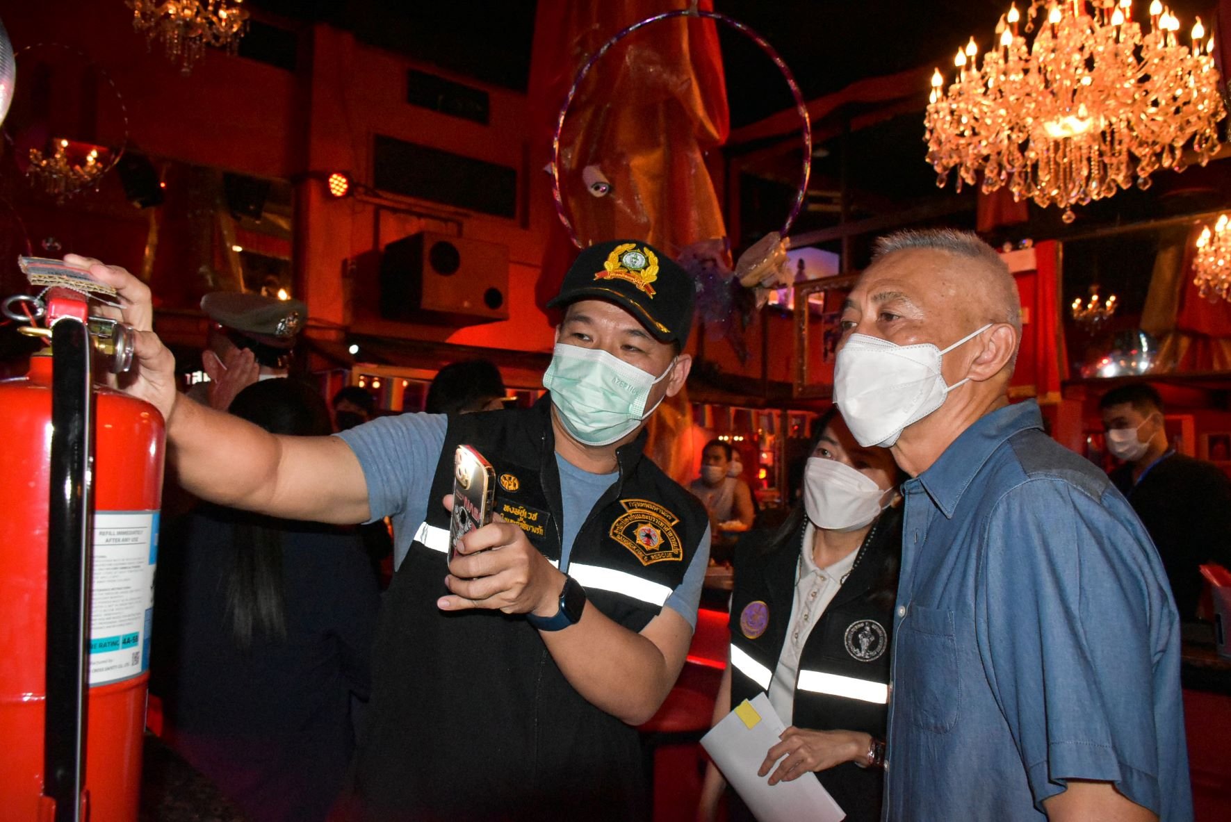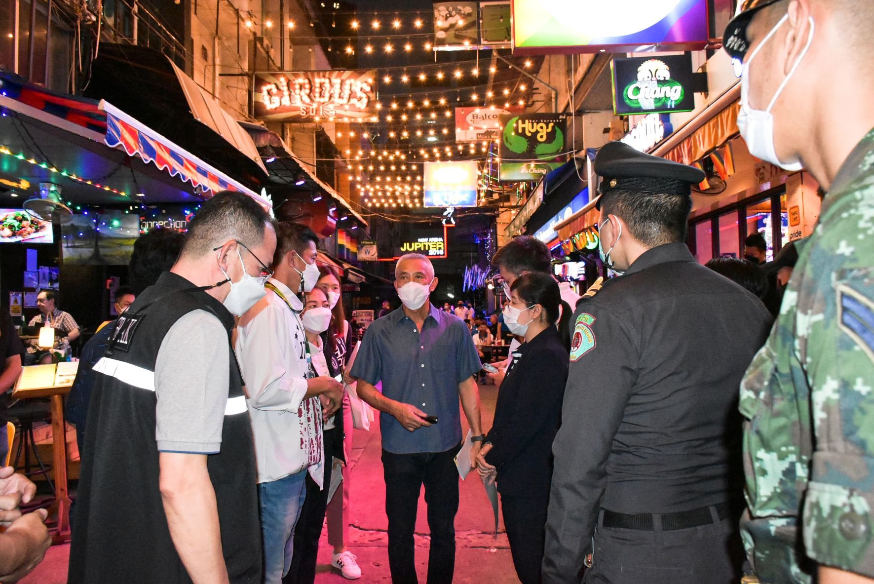 สำหรับการตรวจเยี่ยมในครั้งนี้ เป็นการตรวจสถานบริการ สถานประกอบการที่มีลักษณะคล้ายสถานบริการ สถานบันเทิง ผับ บาร์ คาราโอเกะ ให้ปฏิบัติตามมาตรการ COVID Free Setting อย่างเคร่งครัด เปิดให้บริการและจำหน่ายและบริโภคเครื่องดื่มแอลกอฮอล์ไม่เกิน 24.00 น. ผู้ให้บริการได้รับวัคซีนตามเกณฑ์และเข็มกระตุ้น ตรวจคัดกรองความเสี่ยงด้วย Thai Save Thai ตรวจสอบประวัติการรับวัคซีนของผู้รับบริการ และให้ปฏิบัติตามมาตรการ Universal Prevention