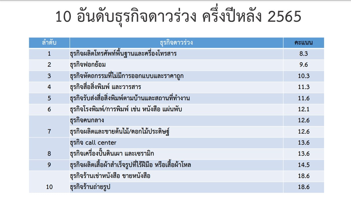 ธุรกิจดาวร่วงในช่วงครึ่งปีหลัง 10 อันดับ ได้แก่