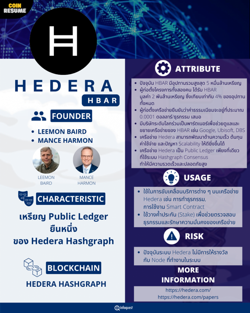 Characteristic เหรียญ Public Ledger ยืนหนึ่งของ Hedera Hashgraph