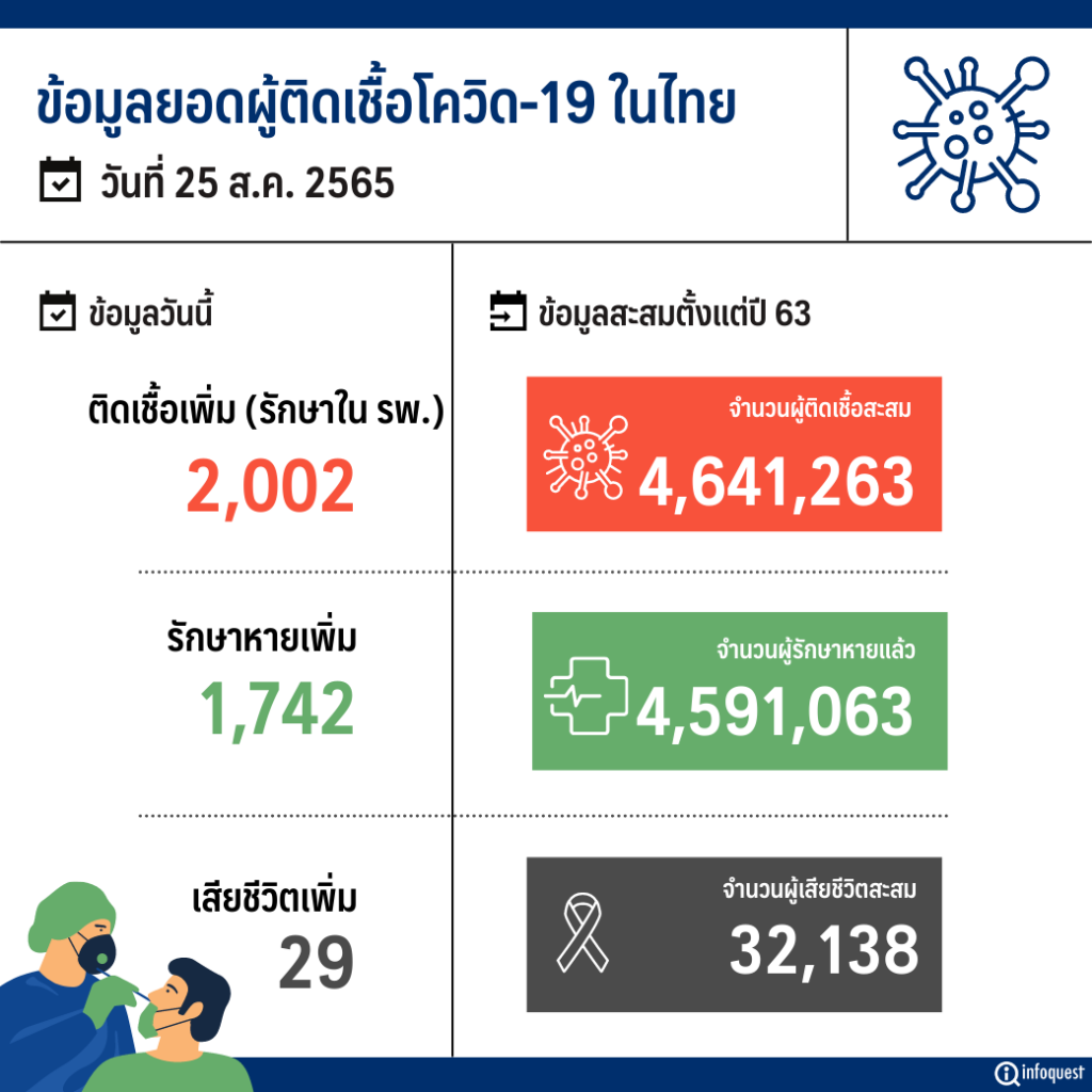 ศบค.พบผู้ติดเชื้อโควิดรายใหม่ 2,002 ราย ตาย 29 ราย