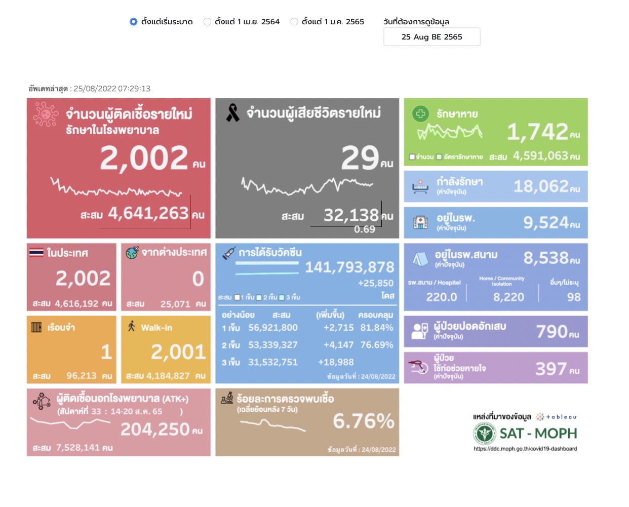 สำหรับจำนวนผู้ป่วยยืนยันสะสมในประเทศตั้งแต่ต้นปี 63 จนถึงล่าสุดอยู่ที่ 4,641,263 ราย โดยมีผู้ป่วยรักษาหายแล้ว 1,742 ราย ยอดเสียชีวิตสะสมเพิ่มเป็น 32,138 ราย
