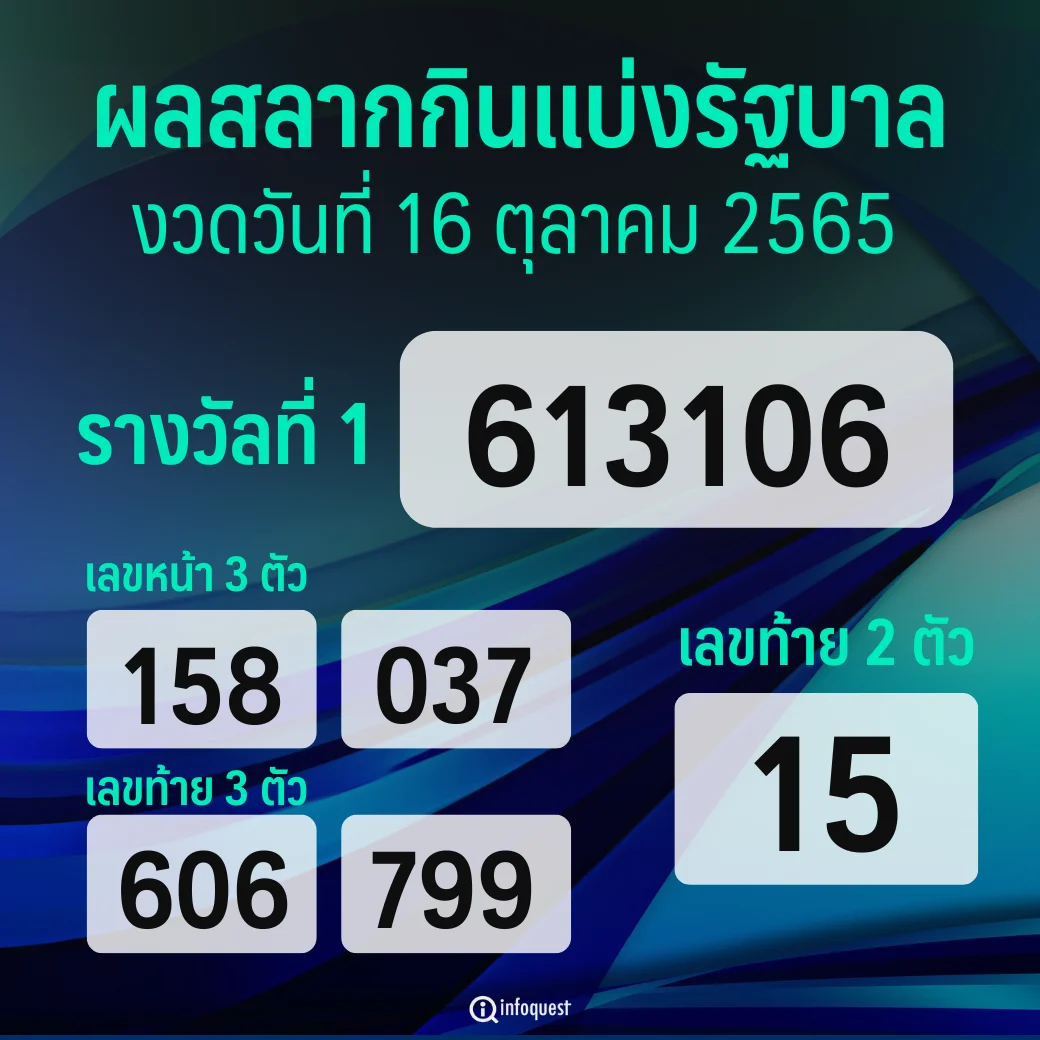 - รางวัลเลขท้ายสามตัว คือ 606 และ 799
