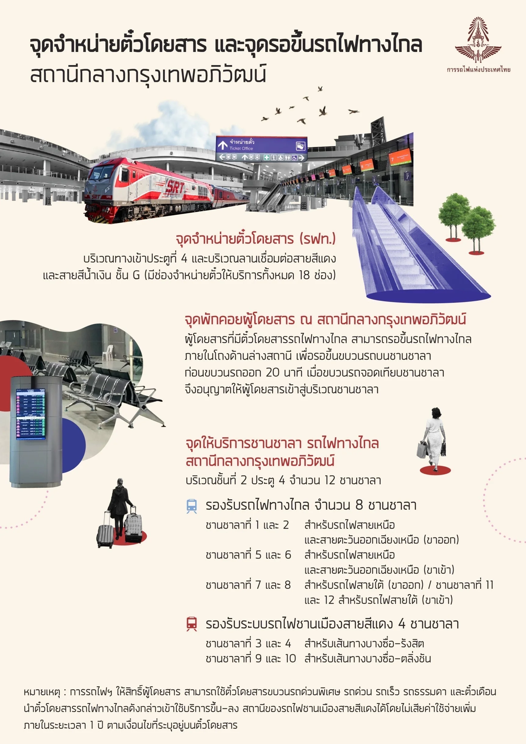 ทั้งนี้ การรถไฟฯ จะไม่มีการจำหน่ายตั๋วรถไฟทางไกลที่สถานีจตุจักร สถานีวัดเสมียนนารี สถานีบางเขน สถานีทุ่งสองห้อง สถานีหลักสี่ สถานีการเคหะ และสถานีหลักหก