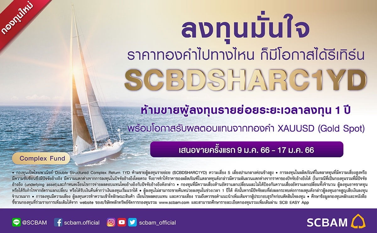 บริษัทฯ จึงเปิดตัวกองทุนใหม่รับปี 66 คือ กองทุน SCBDSHARC1YD หรือ กองทุนเปิดไทยพาณิชย์ Double Structured Complex Return 1YD ห้ามขายผู้ลงทุนรายย่อย กองทุน Complex Fund อายุ 1 ปี ที่เน้นลงทุนในตราสารหนี้และทองคำ โดยจะมีการลงทุนในตราสารหนี้ ประมาณร้อยละ 98.60 ของมูลค่าทรัพย์สินสุทธิของกองทุน เพื่อรับเงินลงทุนคืนพร้อมผลตอบแทน/ดอกเบี้ย ที่มีมูลค่าเทียบเท่ากับเงินต้น และสร้างผลตอบแทนส่วนเพิ่มให้กับกองทุน ด้วยการลงทุนในสัญญาออปชั่น (Option) ที่มีการจ่ายผลตอบแทนอ้างอิงกับราคาทองคำ Gold spot (XAUUSD) อีกร้อยละ 1.40 ของมูลค่าทรัพย์สินสุทธิของกองทุน ลักษณะการจ่ายผลตอบแทนของสัญญาเป็นแบบ twin -win เมื่อราคาทองคำปรับเพิ่มขึ้นหรือลดลงไม่เกิน 12% เมื่อเทียบกับราคาสินทรัพย์ ณ วันเริ่มต้นสัญญา