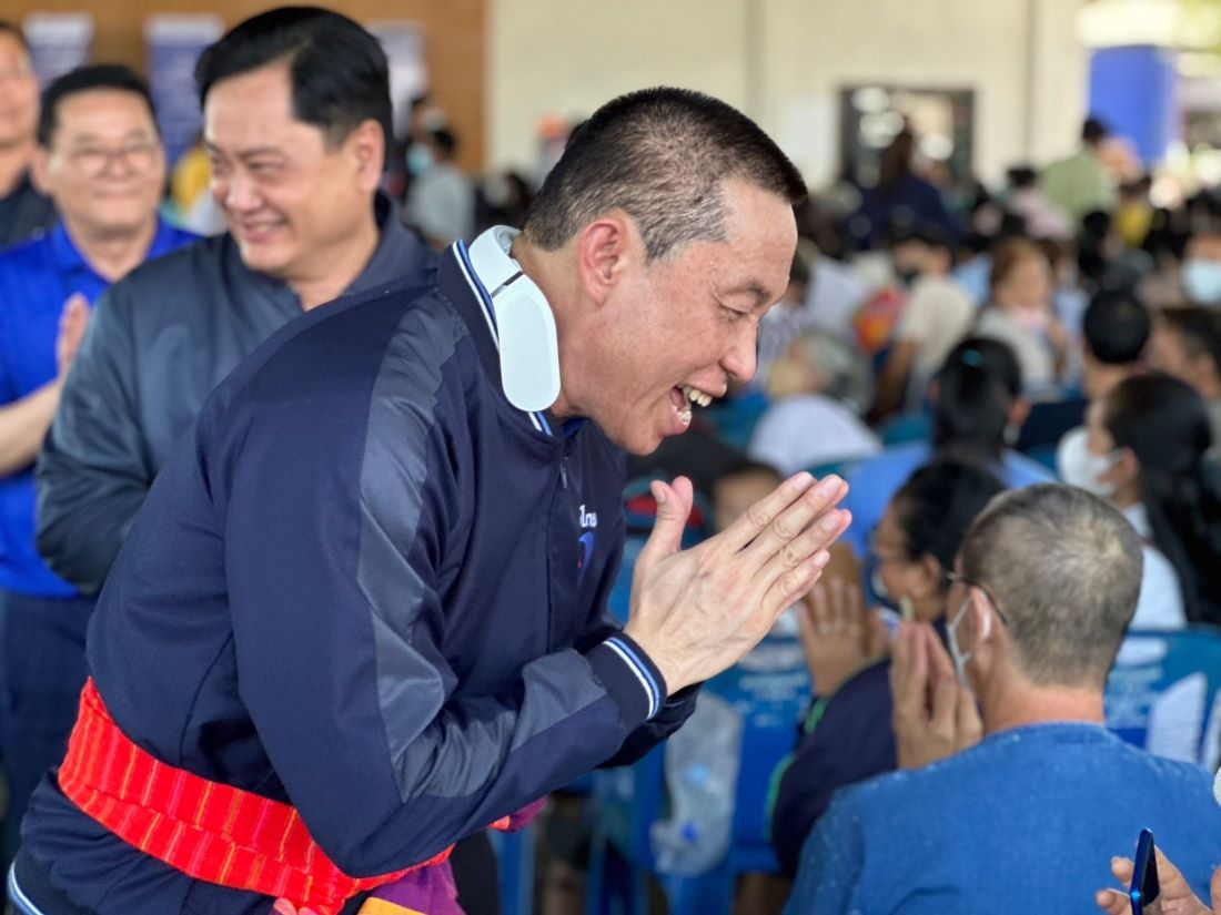 โดยจุดแรก ที่โรงเรียนท่าม่วงราษฎร์บำรุง อ.ท่าม่วง จ.กาญจนบุรี นายศักดิ์สยาม ขึ้นเวทีแนะนำนายสมเกียรติ วอนเพียร ว่าที่ผู้สมัคร ส.ส.เขต 2 กาญจนบุรี พร้อมปราศรัยว่า หลังการเลือกตั้งหากพรรคภูมิใจไทยได้เป็นรัฐบาล จะเสนอนโยบายพักหนี้ให้ประชาชนที่ได้รับความเดือดร้อนในช่วงวิกฤติโควิดที่ผ่านมา เป็นเวลา 3 ปีโดยไม่มีดอกเบี้ย