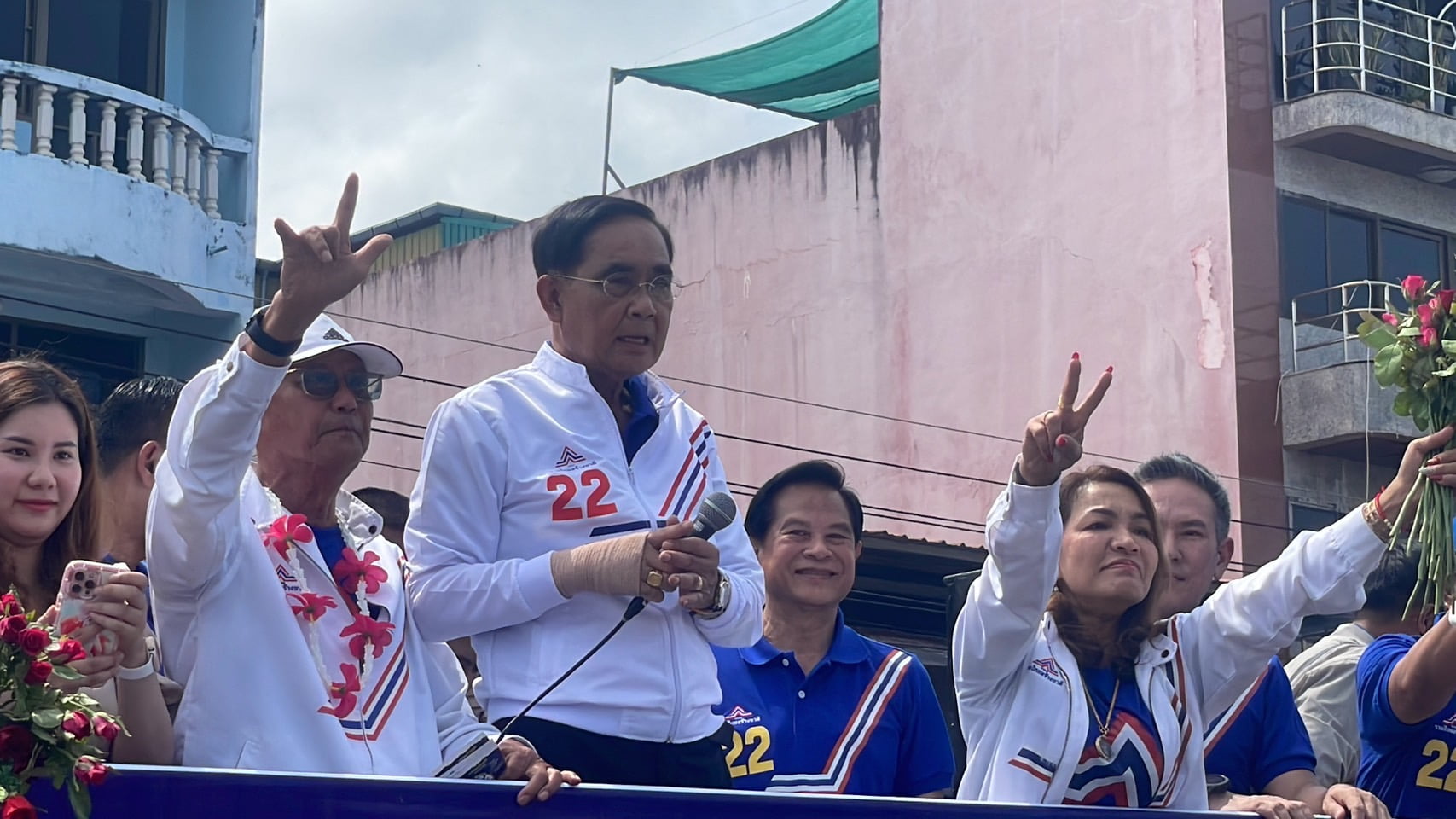 พล.อ.ประยุทธ์ จันทร์โอชา และแคนดิเดทนายกรัฐมนตรี และประธานคณะกรรมการกำหนดแนวทางและยุทธศาสตร์พรรครวมไทยสร้างชาติ (รทสช.) พร้อมนายพีระพันธุ์ สาลีรัฐวิภาค หัวหน้าพรรค นายเอกนัฏ พร้อมพันธุ์ เลขาธิการพรรค และคณะ เดินทางถึงท่าอากาศยานตรัง เพื่อลงพื้นที่หาเสียงภาคใต้ จ.ตรัง จ.พัทลุง และ จ.สงขลา ระหว่างวันที่ 29-30 เม.ย. ช่วยผู้สมัครส.ส.ของพรรครวมไทยสร้างชาติในช่วงใกล้โค้งสุดท้ายก่อนการเลือกตั้ง