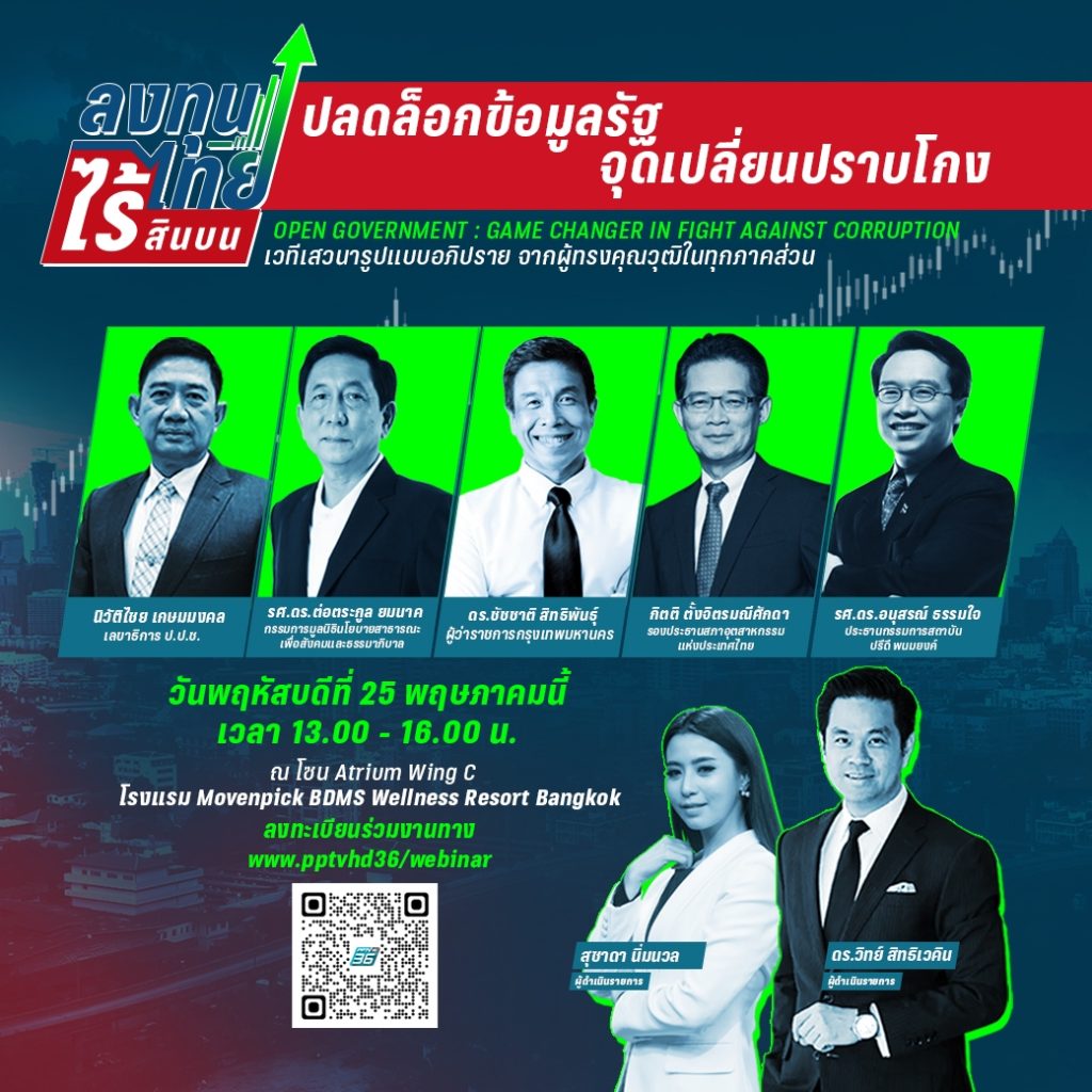 สถานีโทรทัศน์พีพีทีวี เอชดี 36 ได้รับการสนับสนุนจากกองทุน ป.ป.ช. ได้จัดเวทีเสวนาระดมผู้บริหารจากหน่วยงานภาครัฐ ภาคเอกชน และนักวิชาการมากประสบการณ์ และองค์ความรู้ มาผนึกกำลังกันเพื่อสะท้อนปัญหา ระดมความคิดเห็น และข้อเสนอแนะในการแก้ไข ป้องกัน และปราบปรามการคอร์รัปชันเพื่อให้เห็นผลเป็นรูปธรรม ในหัวข้อ ลงทุนไทยไร้สินบน: ปลดล็อกข้อมูลรัฐ จุดเปลี่ยนปราบโกง