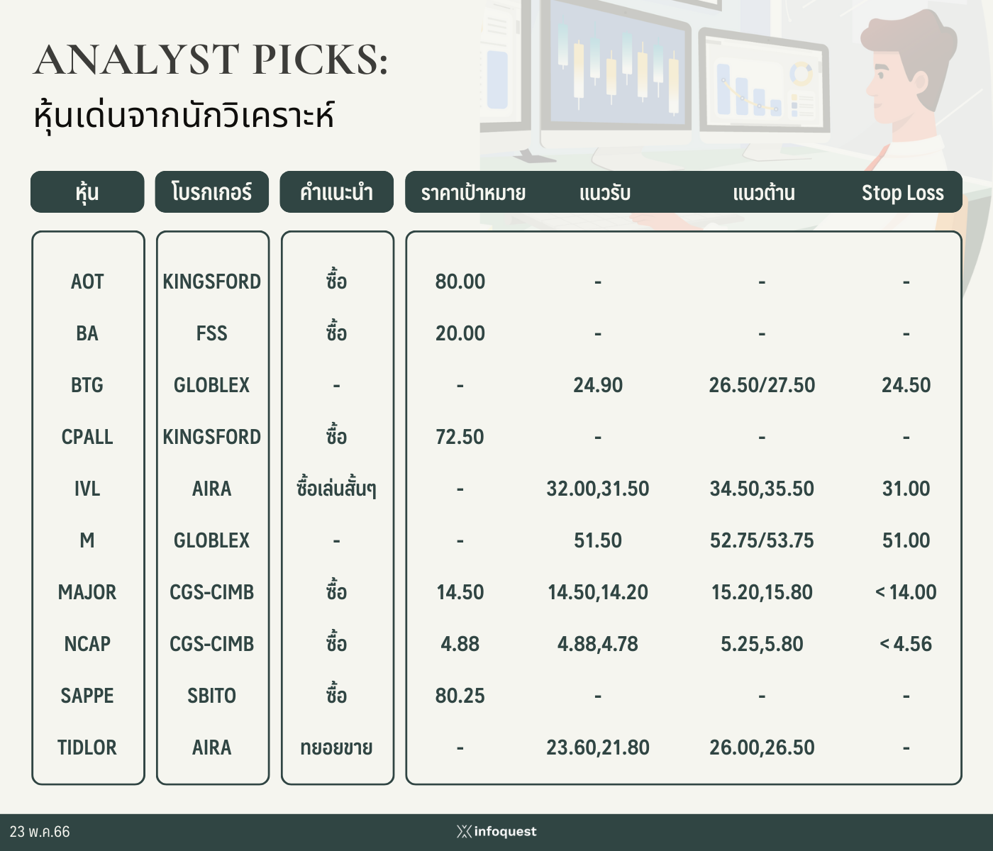 ANALYST PICKS: หุ้นเด่นจากนักวิเคราะห์ วันที่ 23 พฤษภาคม 2566