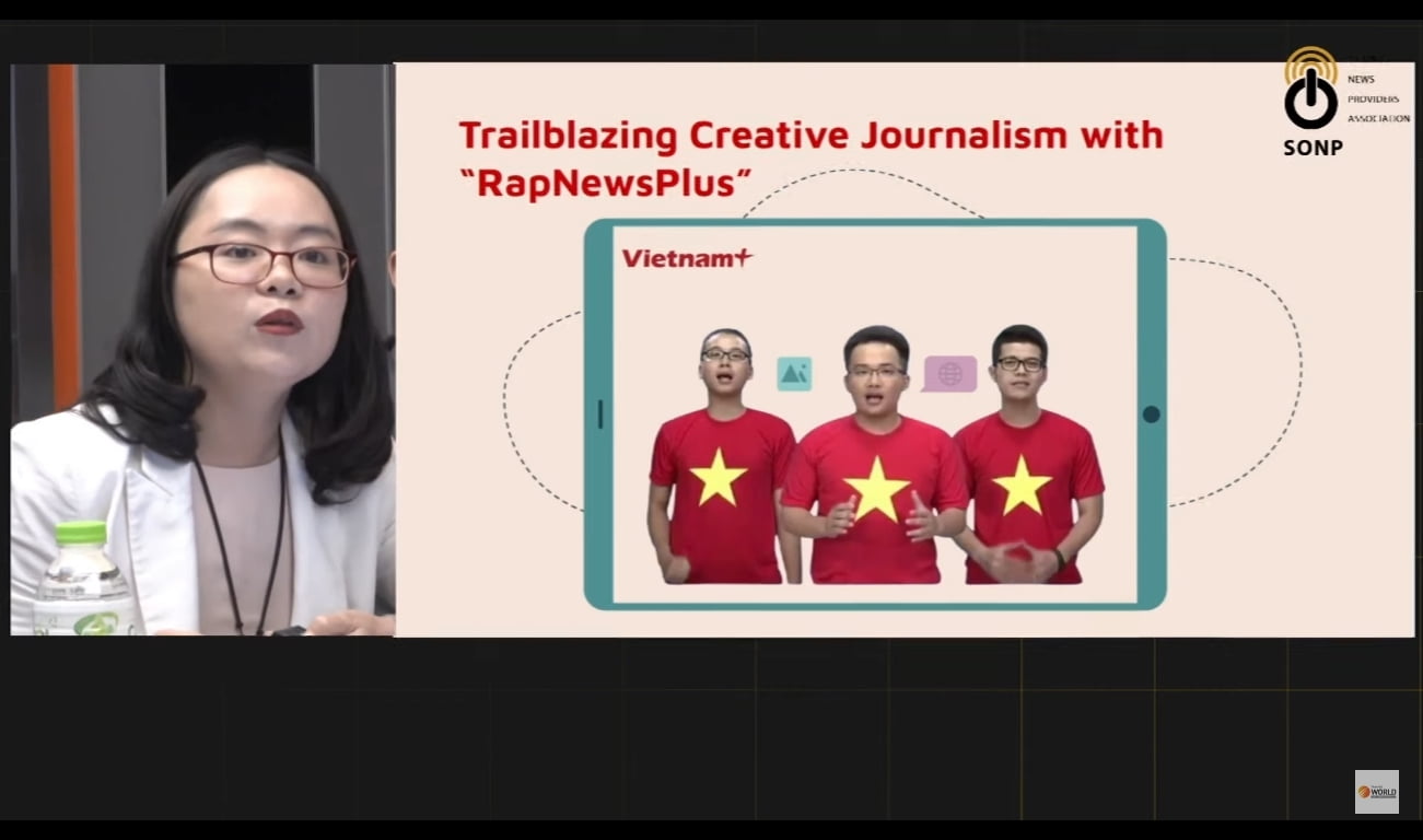 เริ่มด้วยวิทยากรจากประเทศเวียดนาม คุณโด๋ มินทู (Do Minh Thu) ผู้บริหารเวียดนามพลัส ออนไลน์ นิวส์ ( VietnamPlus Online News) สื่อหนังสือพิมพ์ออนไลน์ที่อยู่ภายใต้สังกัดของสำนักข่าวเวียดนาม นิวส์ เอเจนซี่ (Vietnam News Agency) ได้ยกตัวอย่างการนำไอเดียใหม่ ที่สร้างสรรค์และไม่ซ้ำใครมาใช้ เพื่อดึงดูดผู้ชมและสร้างกระแสไวรัลในโลกอินเทอร์เน็ตด้วยการเปิดตัว RapsNewsPlus หรือรายการนำเสนอข่าวในรูปแบบของการแร็พ โดยหยิบยกประเด็นที่กำลังเป็นกระแสมาดึงดูดผู้ชมในขณะเดียวกันก็สามารถมอบความบันเทิงไปพร้อมกับการเล่าข่าว