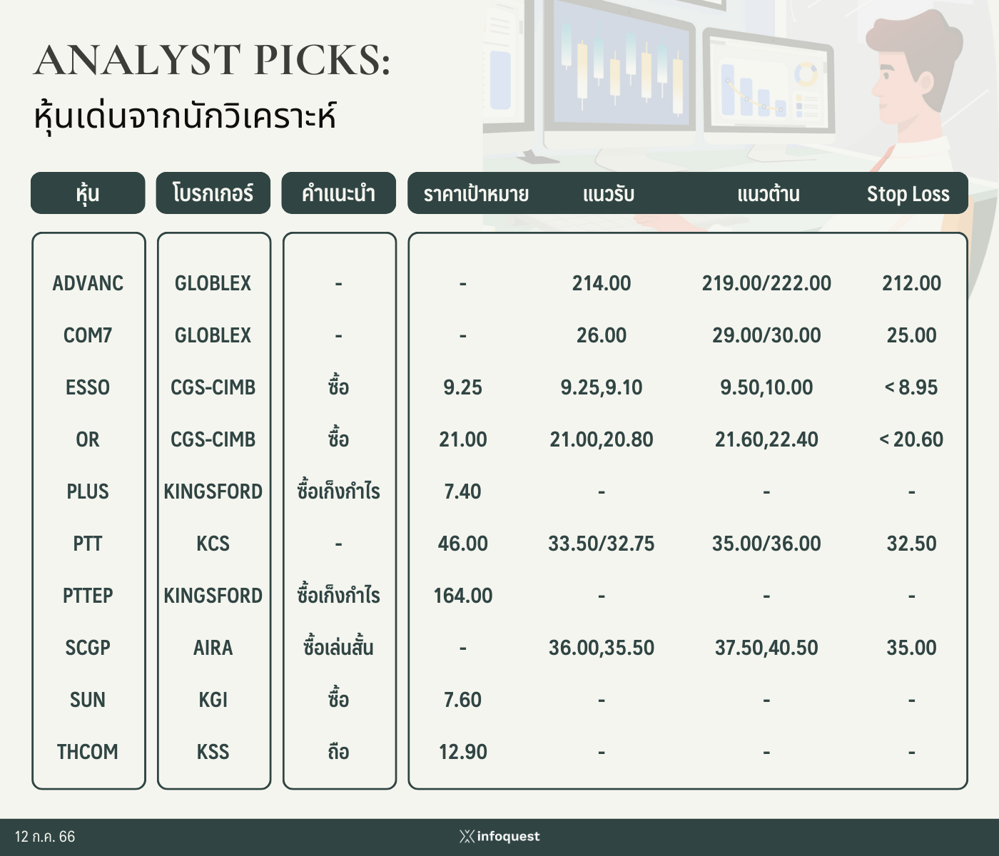 ANALYST PICKS: หุ้นเด่นจากนักวิเคราะห์ วันที่ 12 กรกฎาคม 2566