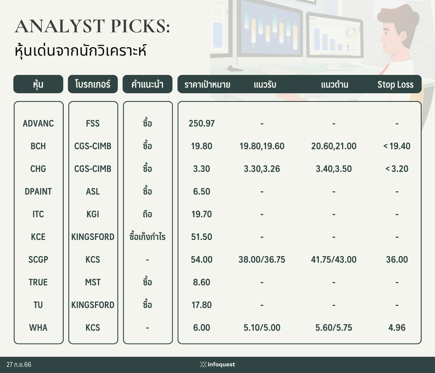 หุ้นเด่นจากนักวิเคราะห์ (ANALYST PICKS) รวบรวมจากบทวิเคราะห์ของโบรกเกอร์ประจำวันนี้