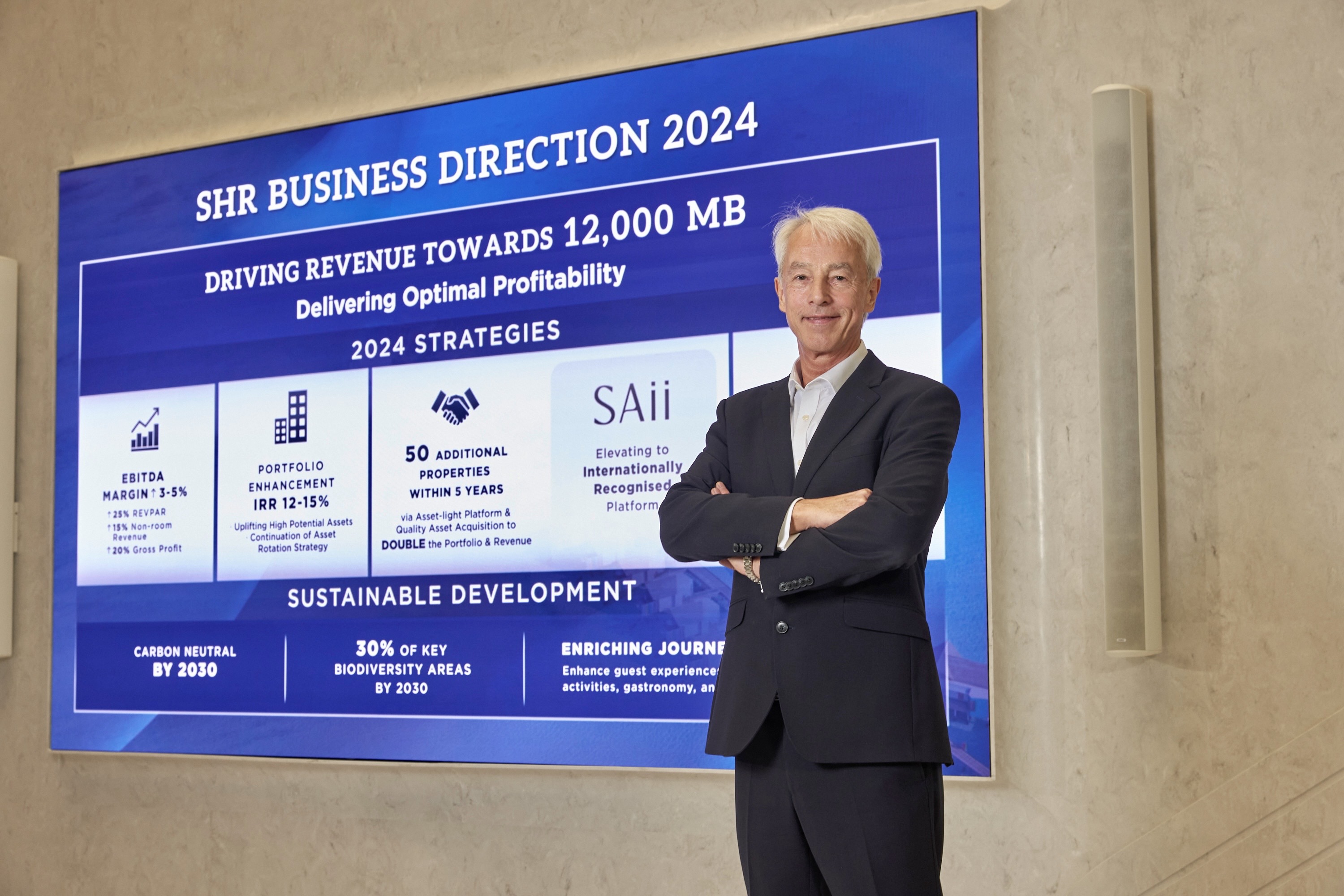นายไมเคิล มาร์แชล ประธานเจ้าหน้าที่บริหาร บมจ.เอส โฮเทล แอนด์ รีสอร์ท (SHR) กล่าวว่า บริษัทตั้งเป้ารายได้ปี 67 ที่ 1.2 หมื่นล้านบาท เพิ่มขึ้นจากปี 66 ที่ทำรายได้ 1 หมื่นล้านบาท ด้วย 4 กลยุทธ์ โดยกลยุทธ์ที่ 1. บริษัทมีแผนที่จะยกระดับศักยภาพในการสร้างอัตรากำไรก่อนหักดอกเบี้ย ภาษี และค่าเสื่อมราคา (EBITDA Margin) เพิ่มขึ้น 3-5% ผ่านปัจจัยการเติบโต 3 ด้าน ได้แก่ อัตราเฉลี่ยต่อห้องต่อคืน (RevPAR) ซึ่งตั้งเป้าว่าจะเติบโต 25% จากยอดการจองห้องพักในมัลดีฟส์ในไตรมาสแรกที่ขยายตัวได้ดี และค่าห้องพักเฉลี่ยต่อคืน (ADR) ซึ่งคาดว่าจะเติบโต 20% จากการปรับปรุงห้องพักของโรงแรมในฟิจิและไทย และการเปิดตัวของโซ/ มัลดีฟส์