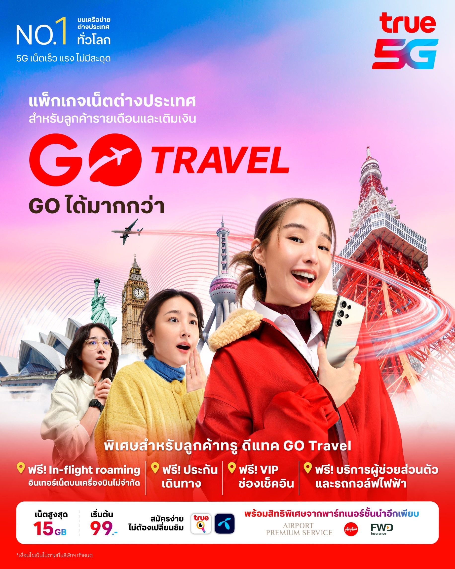 นายฐานพล มานะวุฒิเวช หัวหน้าคณะผู้บริหารด้านการตลาด บมจ. ทรู คอร์ปอเรชั่น (TRUE) กล่าวว่า ทรู คอร์ปอเรชั่น มอบประสบการณ์ท่องเที่ยวที่มากกว่าบริการการโรมมิ่ง (Beyond Roaming) เปิดตัวซิมและแพ็กเกจเน็ตต่างประเทศใหม่ภายใต้ชื่อเดียวคือ “GO Travel” ให้ลูกค้าทั้งทรูและดีแทค เดินทางท่องโลกสัมผัสประสบการณ์ระดับเวิล์ดคลาส สื่อสารไม่สะดุด โดยร่วมกับกว่า 700+ พันธมิตรผ่านเครือข่ายอันดับ 1 ทั่วโลก และเป็นครั้งแรกของวงการโรมมิ่งไทย ที่ให้ใช้อินเทอร์เน็ตบนเครื่องบินฟรี กับ 25 สายการบินชั้นนำทั่วโลก กับแพ็กเกจเน็ตต่างประเทศ GO Travel ทั้งรายเดือนและเติมเงิน