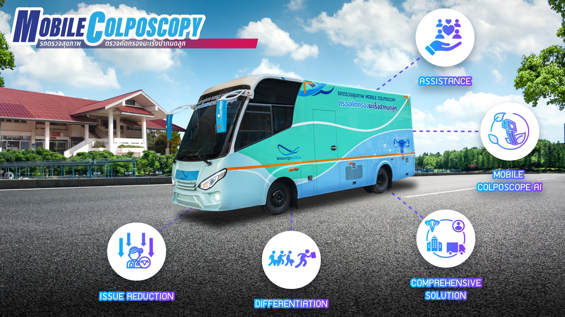 ในปี 67 บริษัทฯได้เปิดตัวรถตรวจสุขภาพเคลื่อนที่ หรือ Mobile Colposcopy คันแรกในประเทศไทย ในเดือนกุมภาพันธ์ที่ผ่านมา สำหรับใช้ตรวจยืนยันผลคัดกรองมะเร็งปากมดลูกในสุภาพสตรี กรณีที่ตรวจพบเชื้อ HPV 16/18 เพื่อเป็นการให้ประชาชนเข้าถึงการตรวจด้วยกล้องคอลโปสโคป โดยการส่องกล้องขยายเพื่อดูปากมดลูกอย่างชัดเจน โดยไม่ต้องเดินทางไกล เนื่องจากในปัจจุบันยังมีปัญหาคอขวดสำหรับผู้หญิงที่พบเชื้อ HPV 16/18 ทำให้เกิดความล่าช้าส่งผลต่อระยะเวลาเพื่อส่งต่อการรักษา ปัจจุบัน WINMED มีรถบัสออกให้บริการ 1 คัน และรถเล็กอีก 1 คัน มาช่วยเสริมโครงการตรวจคัดกรอง “มะเร็งปากมดลูก”