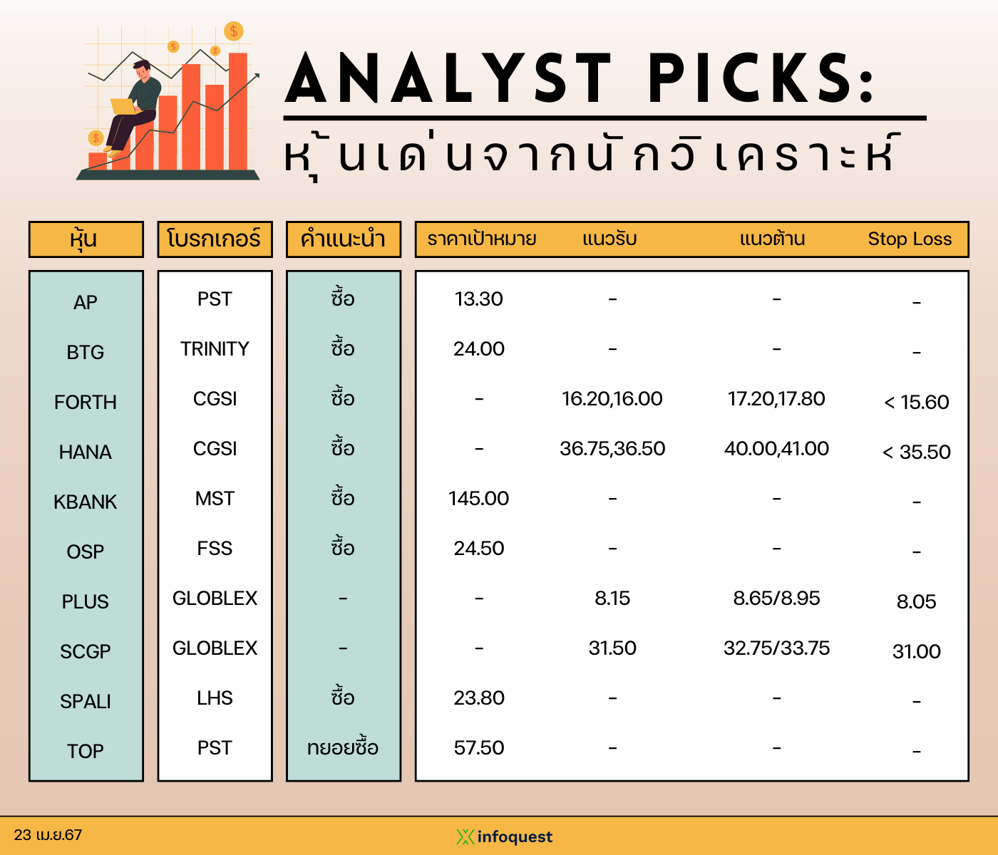 หุ้นเด่นจากนักวิเคราะห์ (ANALYST PICKS) รวบรวมจากบทวิเคราะห์ของโบรกเกอร์ประจำวันนี้