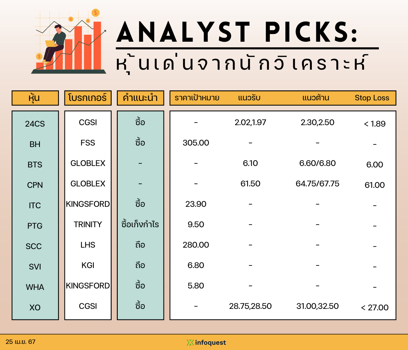 หุ้นเด่นจากนักวิเคราะห์ (ANALYST PICKS) รวบรวมจากบทวิเคราะห์ของโบรกเกอร์ประจำวันนี้