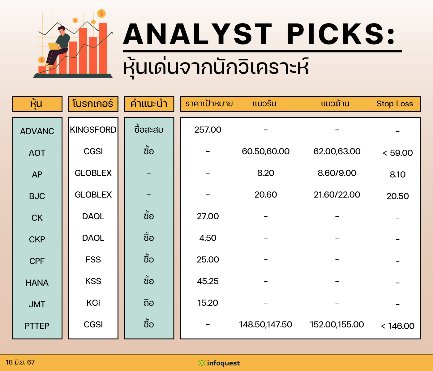 หุ้นเด่นจากนักวิเคราะห์ (ANALYST PICKS) รวบรวมจากบทวิเคราะห์ของโบรกเกอร์ประจำวันนี้