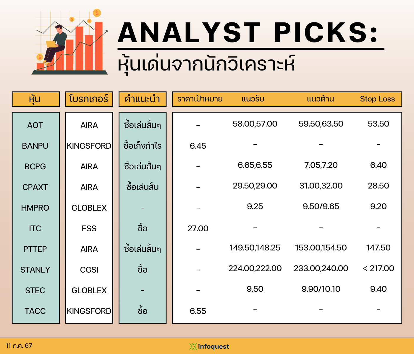 ANALYST PICKS: หุ้นเด่นจากนักวิเคราะห์ วันที่ 11 กรกฎาคม 2567