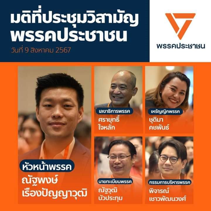 นายพริษฐ์ วัชรสินธุ สส.พรรคประชาชน กล่าวว่า วันนี้ที่ประชุมมีมติเปลี่ยนชื่อพรรคเป็น “พรรคประชาชน (People’s Party)” คำขวัญประจำพรรคคือ “โดยประชาชน เพื่อประชาชน สร้างประเทศไทยที่อำนาจสูงสุดเป็นของประชาชน” มีสัญลักษณ์สามเหลี่ยมสีส้มหัวกลับ ต่อยอดมาจากแนวคิดของพรรคอนาคตใหม่และพรรคก้าวไกล