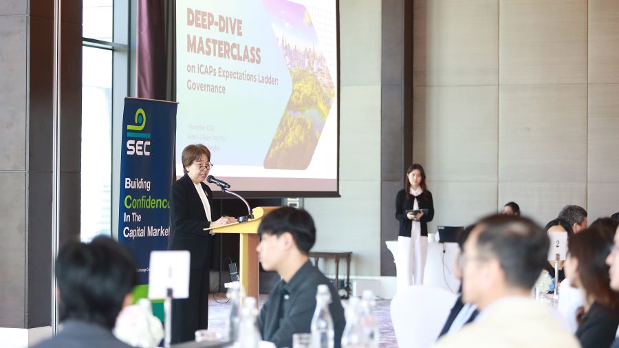 นางพรอนงค์ บุษราตระกูล เลขาธิการ สำนักงานคณะกรรมการกำกับหลักทรัพย์และตลาดหลักทรัพย์ (ก.ล.ต.) กล่าวว่า ก.ล.ต ร่วมกับ Principles for Responsible Investment (PRI) และ Asia Investor Group on Climate Change (AIGCC) จัดอบรมเชิงปฏิบัติการเชิงลึกภายใต้หัวข้อ “Deep-dive Masterclass on ICAPs Expectations Ladder: Governance” ในวันที่ 1 พฤศจิกายน 2567 เพื่อเสริมสร้างศักยภาพบริษัทหลักทรัพย์จัดการกองทุน (บลจ.) ในการจัดทำแผนปฏิบัติการด้านสภาพภูมิอากาศเพื่อมุ่งสู่เป้าหมาย Net Zero