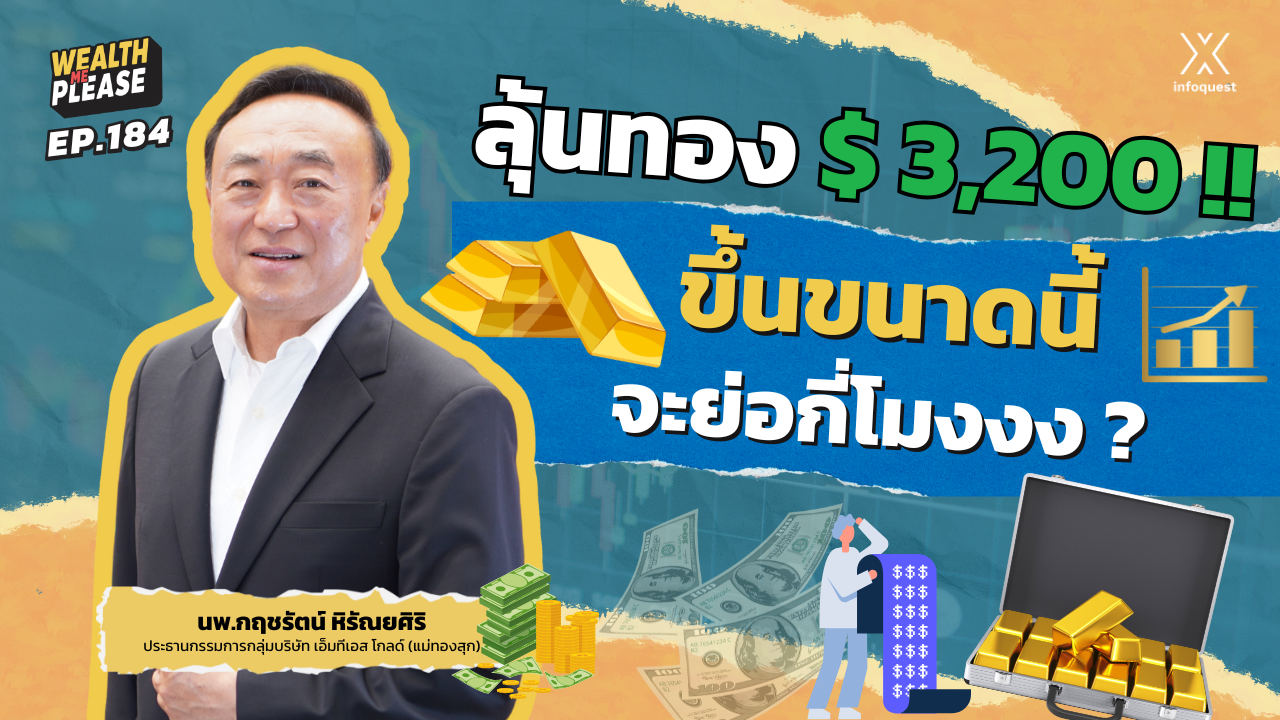 ว่าแต่ ราคาทองพุ่งไปมากขนาดนี้ แล้วจะยังพุ่งต่อไปได้อีกมากแค่ไหน ? เข้าตอนนี้จะทันรึเปล่า ! “Wealth Me Please” EP. นี้จะพามาคุยกับกูรูอย่าง นพ.กฤชรัตน์ หิรัณยศิริ ประธานกรรมการกลุ่มบริษัท เอ็มทีเอส โกลด์ (แม่ทองสุก) ที่จะมาวิเคราะห์แนวโน้มของราคาทองคำในอนาคตว่ามันจะพีคไปกว่านี้ได้อีกไหม !?