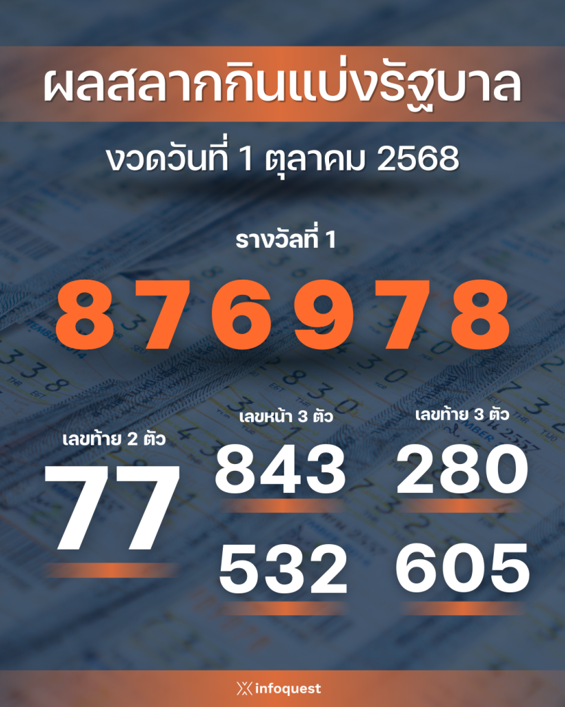 ผลสลากกินแบ่งรัฐบาล งวดประจำวันที่ 1 ตุลาคม 2568