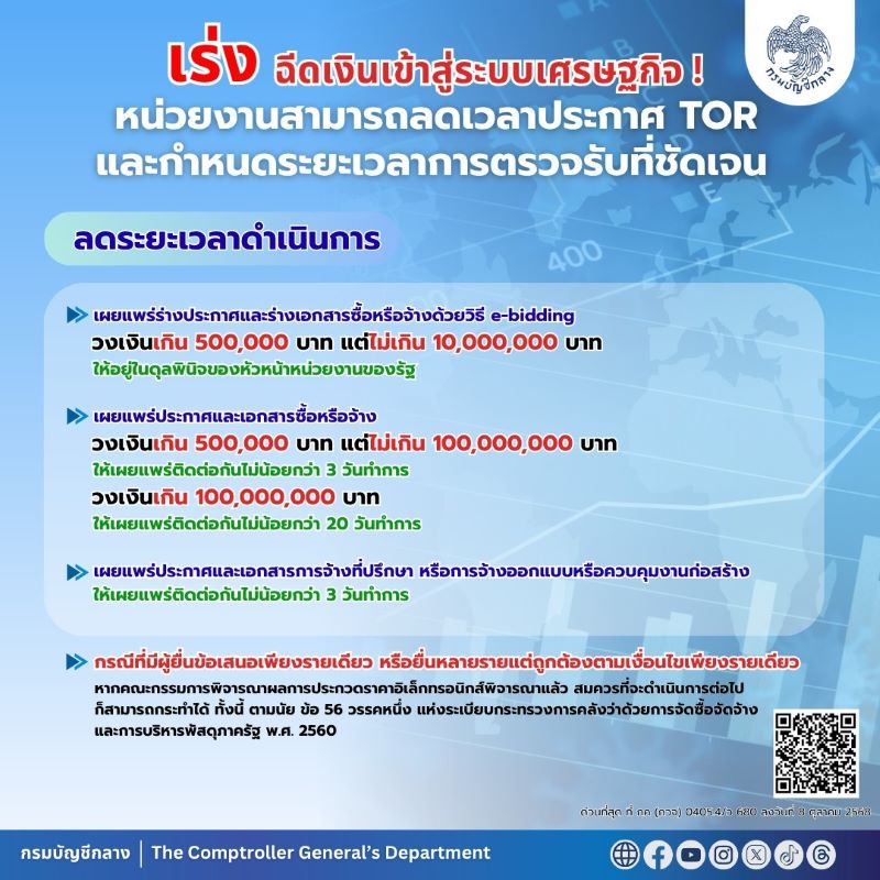 คลัง อนุญาตหน่วยงานลดเวลาประกาศ TOR ช่วยเบิกจ่ายงบคล่องตัว ขานรับกระตุ้นศก.