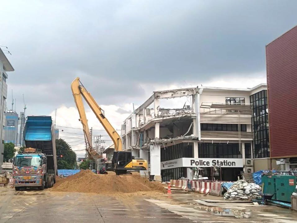 สำหรับอาคารสถานีตำรวจนครบาลสามเสน (สน.สามเสน) ได้ดำเนินการรื้อถอนดาดฟ้าของอาคาร ซึ่งเป็นพื้นคอนกรีตเสริมเหล็ก โดยใช้โรบอทในการรื้อถอนและได้มีการตรวจวัดการเคลื่อนตัวของอาคารตลอดเวลา เพื่อวัดค่าการทรุดตัวของอาคารอย่างต่อเนื่อง ทั้งนี้ รฟม. และผู้รับจ้าง รวมถึงหน่วยงานที่เกี่ยวข้องยังคงติดตาม ตรวจสอบ และประเมินสภาพอาคาร สน.สามเสน รวมถึงอาคารแฟลตตำรวจ และอาคารข้างเคียงอย่างต่อเนื่องเพื่อความปลอดภัยสูงสุด โดยทุกส่วนงานยังคงเร่งดำเนินการและคำนึงถึงความปลอดภัยอย่างต่อเนื่อง เพื่อเร่งคืนสภาพพื้นผิวการจราจรต่อไป